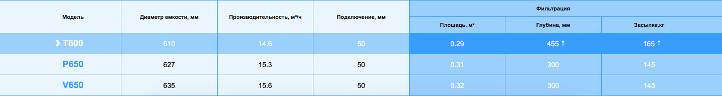 Фильтр Emaux T600 предназначен для работы при большем давлении и температуре жидкости, чем большинство аналогов рынка оборудования для бассейнов в этом классе. Выдерживает рабочее давление в 4 Бар. Фильтрующая площадь модели составляет 0.29 м2. Для засыпки рекомендуется использовать стеклянную (или кварц) засыпку массой до 165 кг. Фракция наполнителя 0-4-0.8 мм. Комплектуется 6-режимным клапаном нового образца с муфтами под трубу (клей) 1.5''/50 мм.