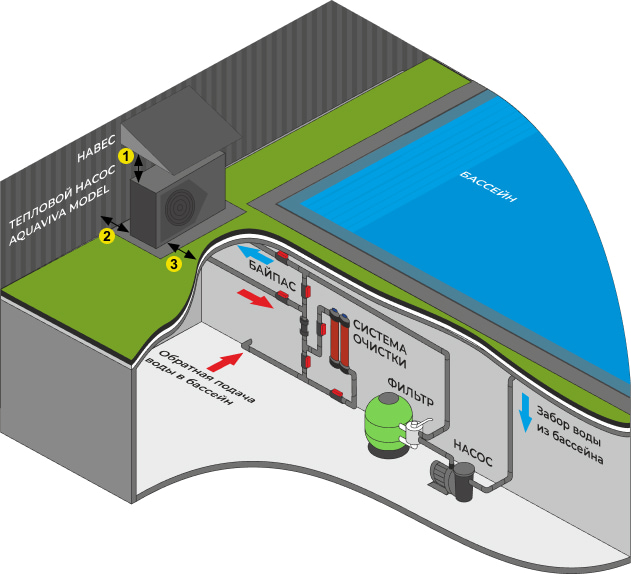 | Рекомендованный объем бассейна, м³ | от 20 до 40 | от 30 до 55 | от 40 до 70 | от 45 до 90 | от 50 до 95 | от 60 до 110 | от 65 до 120 |