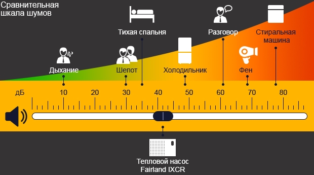 | Звуковое давление при мощности 50% при 1 м, дБА | 39.5 | 41.3 | 43.7 | 44.5 | 44.4 | 46.4 | 43.8 |