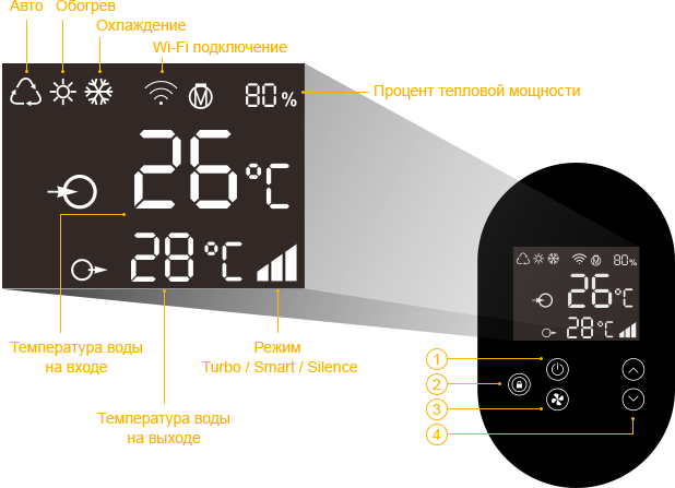 кнопка включения и выключения теплового насоса