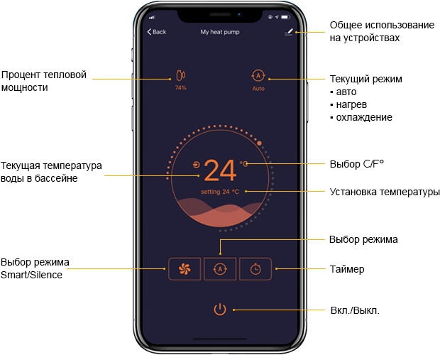 Управление осуществляется посредством встроенного Wi-Fi модуля и специального мобильного приложения Fairland Smart Pool на вашем Android или iOS смартфоне.